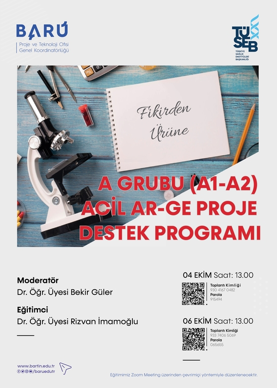TÜSEB A grubu (A1 ve A2)Acil Ar-Ge Proje Destek Programı Kapsamında Eğitim