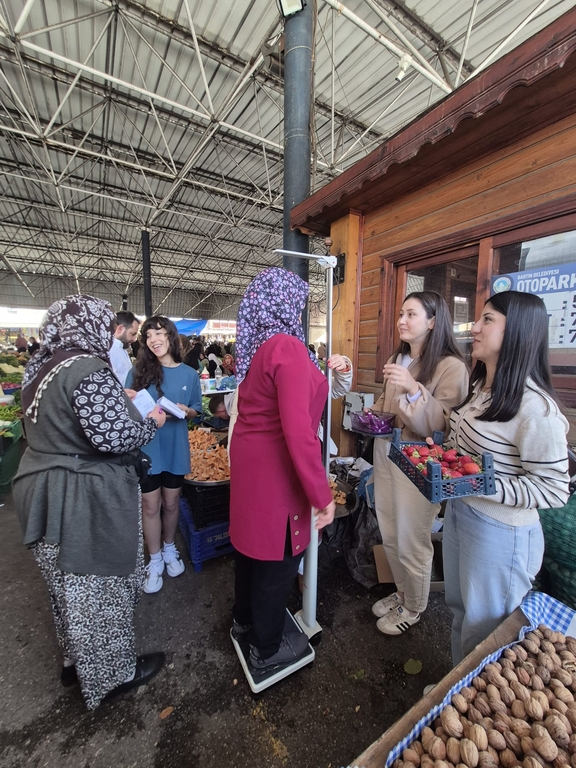 Etkinlik kapsamında öğrenciler, katılımcıların boy ve kilo ölçümlerini gerçekleştirirken aynı zamanda sağlıklı yaşam, düzenli fiziksel aktivite ve dengeli beslenmenin önemi hakkında bilgilendirici broşürler dağıttı. Programa katılan Diyetisyen Tuğçe Bakar Kalaycıoğlu, sağlıklı beslenme konusunda vatandaşlarla bilgi paylaşımında bulunarak bireysel soruları yanıtladı.