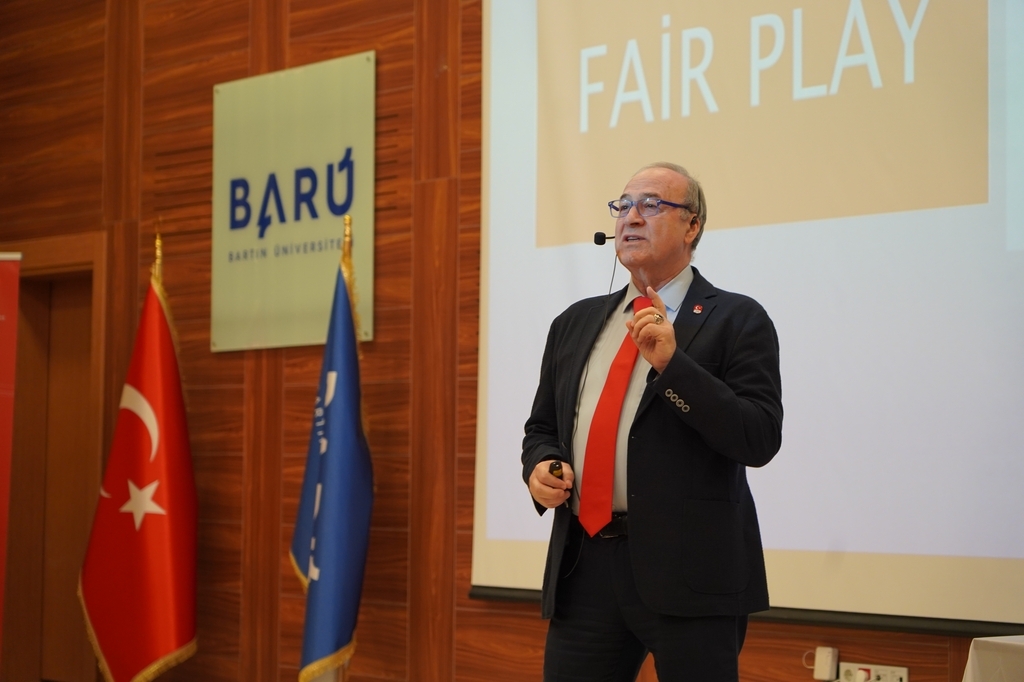 Programın açılış konuşmasını yapan BARÜ Rektörü Prof. Dr. Ahmet Akkaya, “Bugün fair play ruhunu anlamak için bir aradayız. Fair play ruhu aslında yüzyıllardır bu topraklarda var olan bir ruh. Anadolu topraklarında iyiye, doğruya, güzele bir eğilim daima var. Her birimiz hayatın içerisindeki zorluklar karşısında birbirimize hoşgörüyle yaklaşabiliyorsak işte o an fair play anıdır. Bu noktada fair play konusunun farklı boyutlarıyla ele alındığı organizasyonun, 2025–2026 akademik yılında Türkiye’de ilk kez Üniversitemiz ev sahipliğinde gerçekleştirilmesinde emeği geçen herkese teşekkür ediyorum.” dedi.