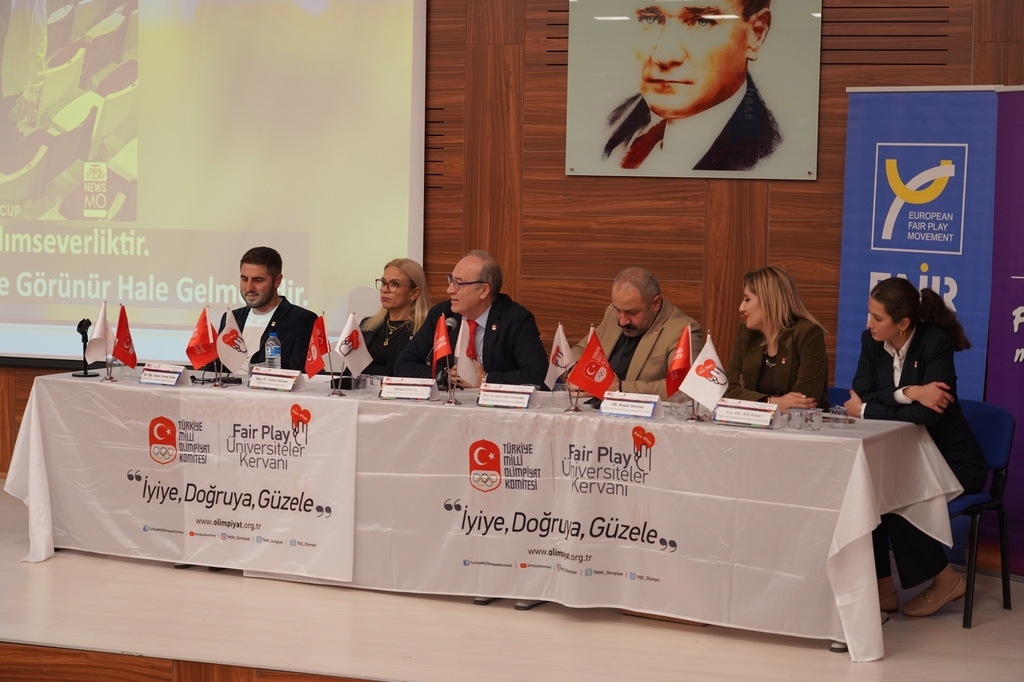 Komisyon Destek Grubu Üyeleri Dr. Öğretim Üyesi Cemal Güler “Fair Play ve Kişisel Gelişim” adlı sunumunu yaparken Dr. Başak Sönmez ve Arş. Gör. Elif Aslan ise “Görsel Yönleriyle Fair Play” konu başlığında fair play’in medya ve görsel iletişim alanlarındaki yansımalarını örnekler üzerinden değerlendirdi.