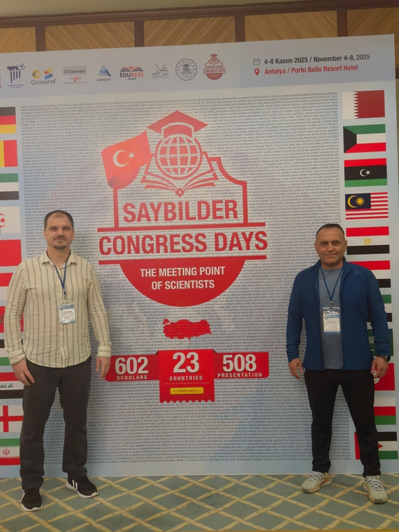 Beden Eğitimi ve Spor Bölümü öğretim üyemiz Dr. Öğr. Üyesi Murat Çelebi ve Antrenörlük Eğitimi öğretim üyemiz Doç. Dr. Ender Eyuboğlu 4-9 Kasım 2025 tarihleri arasında Antalya Porto Bello Resort Hotel'de düzenlenen 2025 uluslararası Saybilder kongresine katılarak çalışmalarını bilim dünyası ile paylaştı.